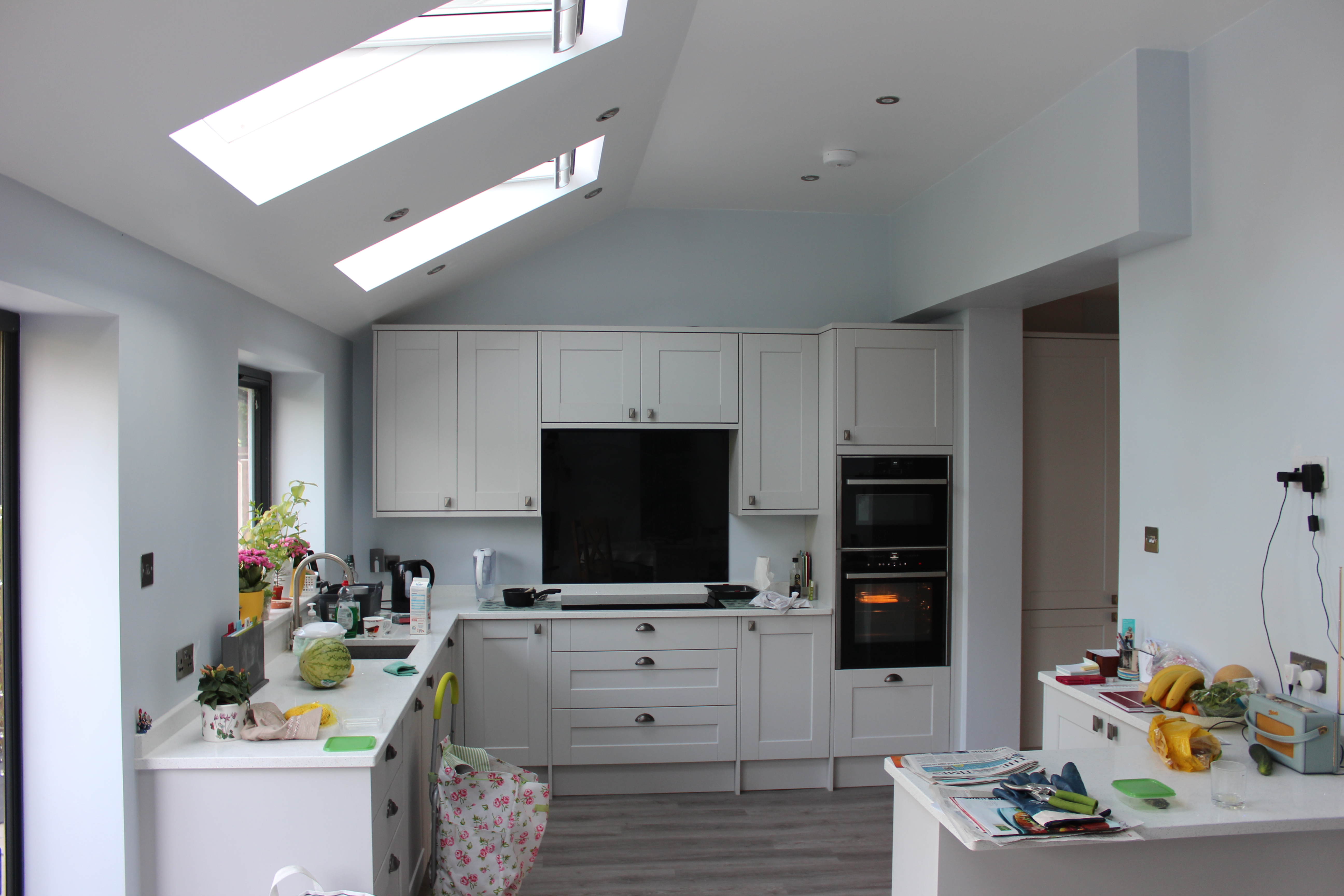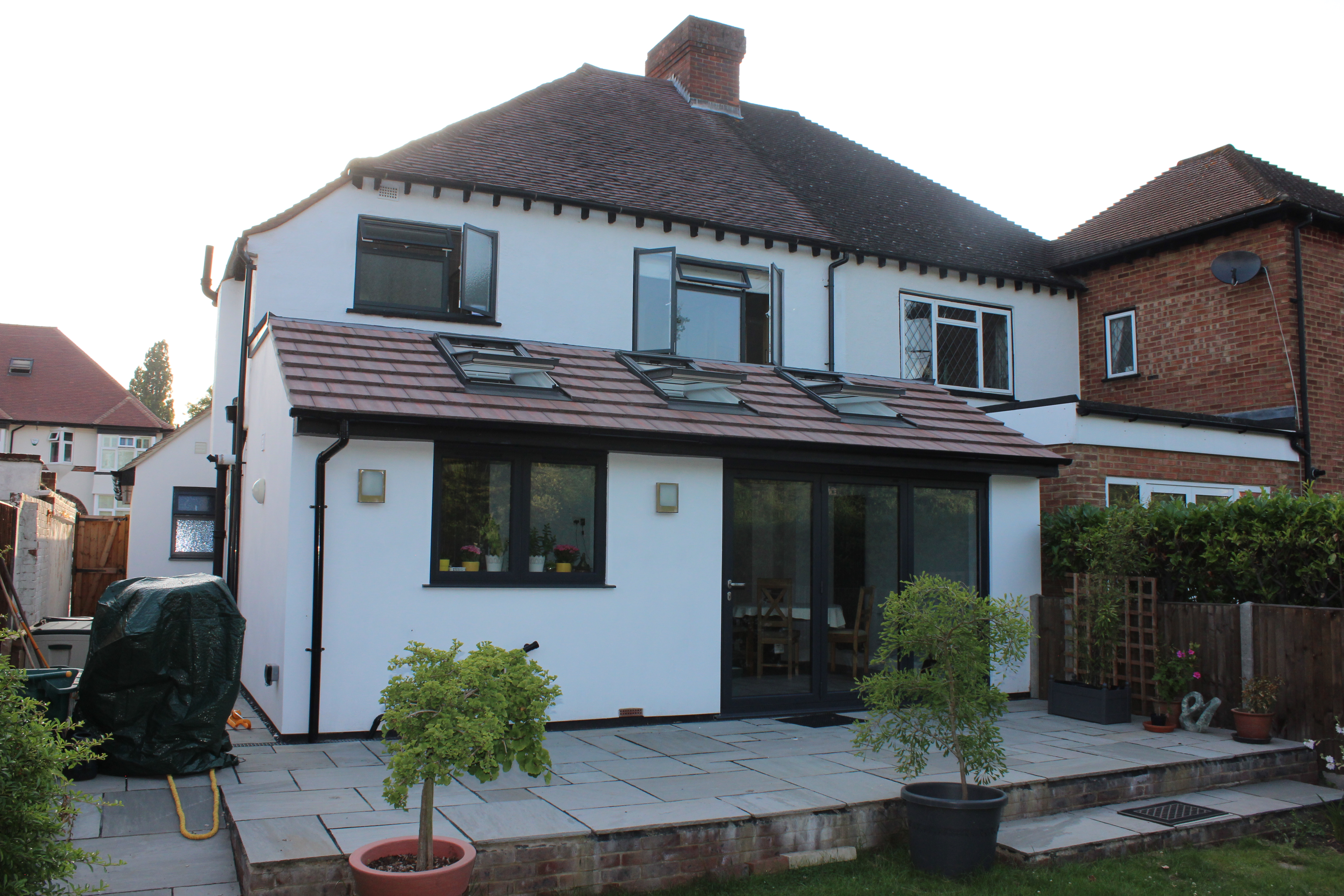This project consisted of 2 seperate extensions, one to the rear and wrap around to the side and front of the property. The rear extension gave a larger kitchen and dining space with the side and front providing a bedroom, downstairs toilet and shower room and a porch. With this build we also included a new patio which ran down the side of the house also, a new driveway and front wall and rendered the front of the house. New windows throughout and plastering internally gave it a more modern look.